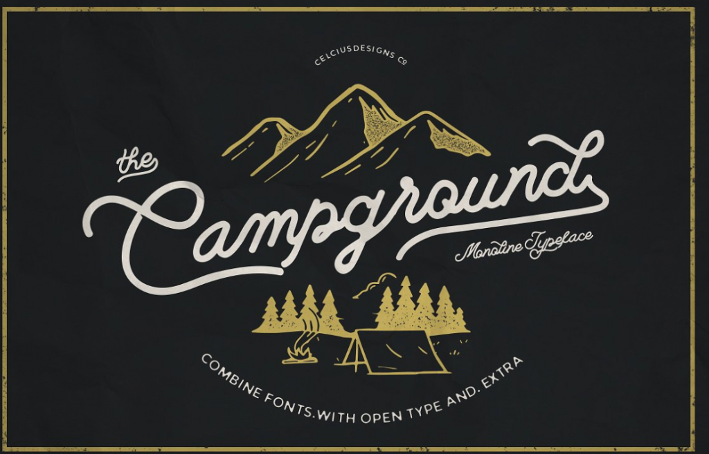 Campground Font supports up to 114 languages including CE languages and even Esperanto. It also has great typeface that looks like halogen flare that creates beautiful designs.